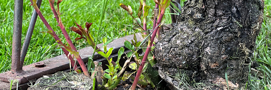 Bij stam-, klim- en struikrozen kunnen wilde scheuten opschieten uit onderstam of wortels. Trek ze zo dicht mogelijk bij de stam weg, dat heeft een beter resultaat dan knippen.