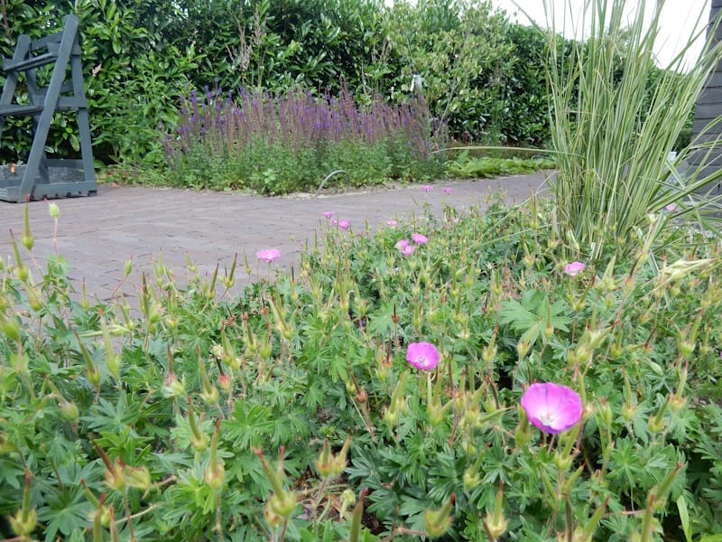 Deze mix van drukke bloemenpracht en rustige elementen zoals gras en hagen maakt de tuin seizoensproof. Trek bestuivers aan en geniet van biodiversiteit zonder extra werk.