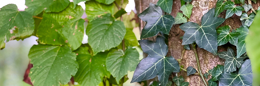Hedera (klimop) rond de stam van een boom vormt in beginsel geen bezwaar. Insecten, vogels en kleine zoogdieren vinden er een mooi onderkomen. Als hij de top bereikt wordt het anders. Daar houdt hij zonlicht tegen en kan blad doen verstikken. Het doorknippen van de wortels rond de stam (in een vroeger stadium) is raadzaam en voorkomt problemen.