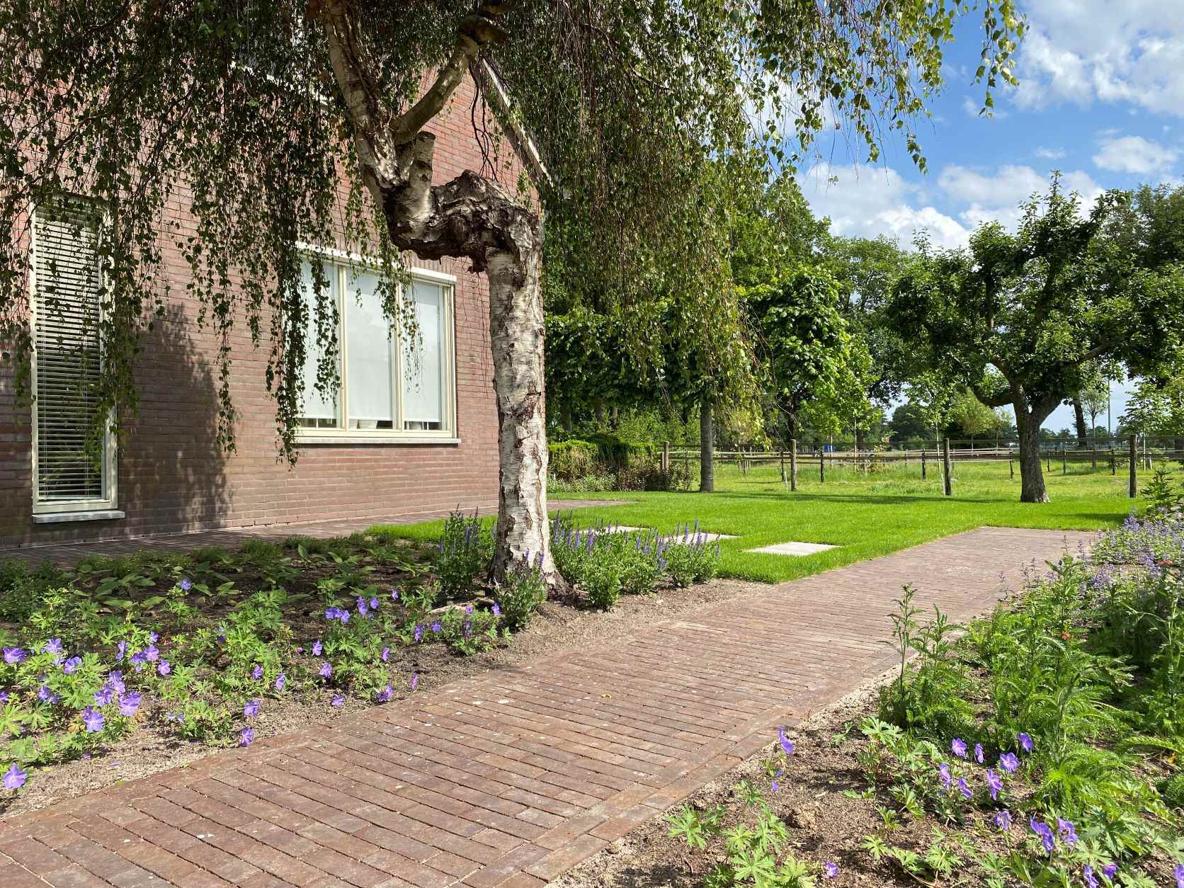 Geen kale grond of zaaien en wachten: direct na aanleg werden premium graszoden gelegd. Een week later kon er al op gelopen worden – perfect voor kinderen en huisdieren.