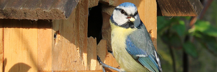 Vogelhuisjes zijn er in hippe, leuke kleuren. Toch geven de meeste vogels, net als deze pimpelmees, de voorkeur aan neutrale kleuren zoals groen, bruin en hout. Dat valt minder op bij roofdieren! Het is belangrijk om vogelhuisjes op een rustige, beschutte plek op te hangen, bij voorkeur op een hoogte van minimaal 1,5 meter. Zorg ervoor dat de invliegopening niet naar het zuiden gericht is om oververhitting te voorkomen.