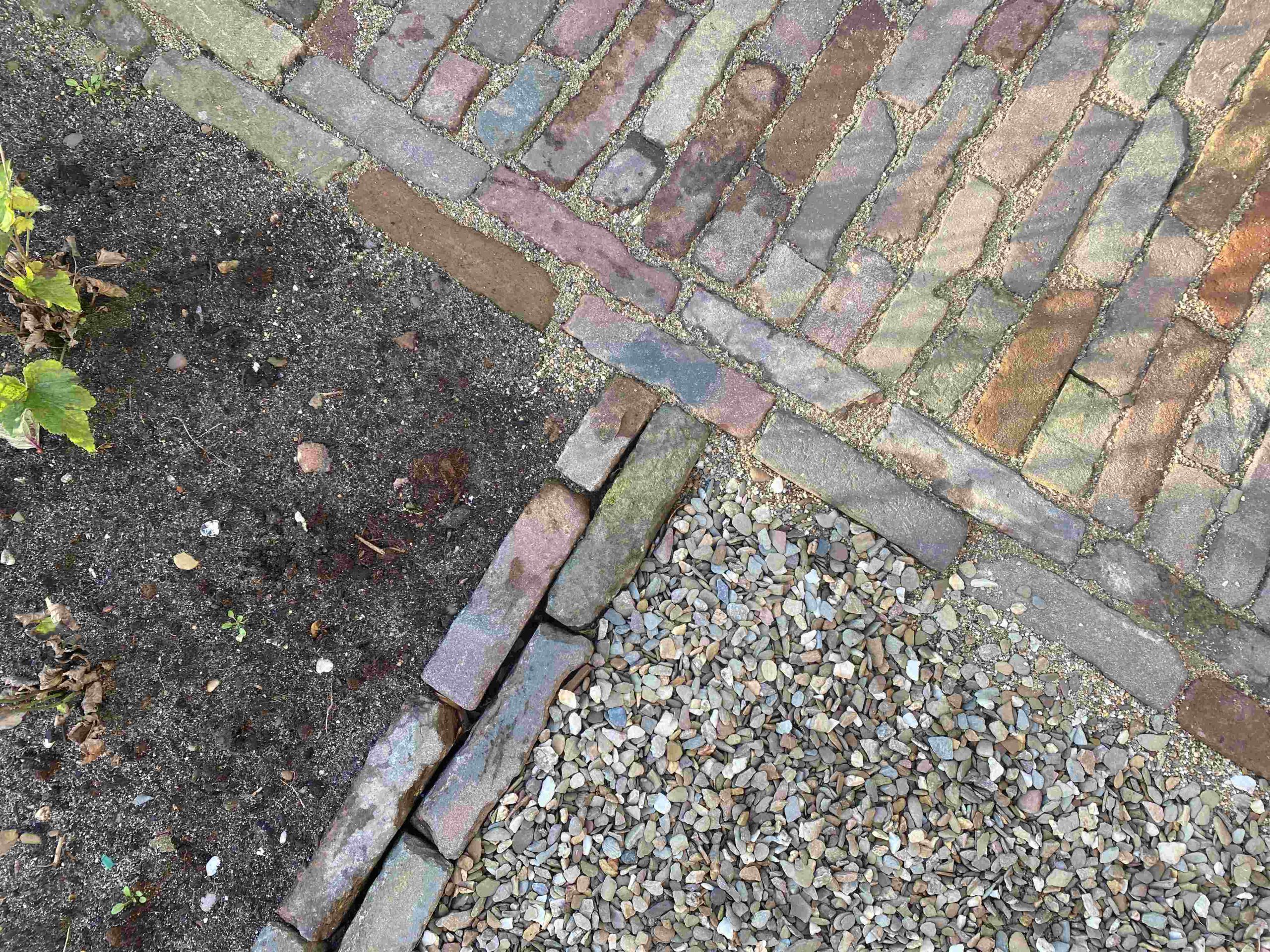 - Smal pad van dezelfde tegel → één geheel, geen rommelig effect